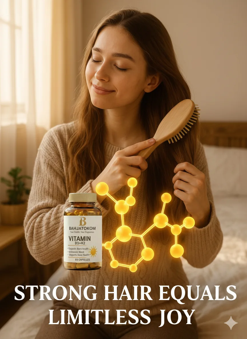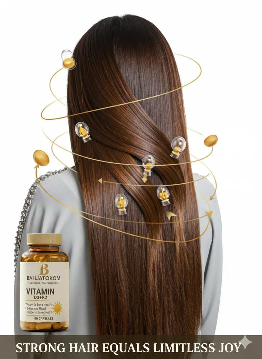 ☀ فيتامين D3 يلعب دورًا مهمًا في دعم بصيلات الشعر، تقوية الجذور، والمساعدة في تقليل التساقط الناتج عن ضعف التغذية ونقص الفيتامينات.